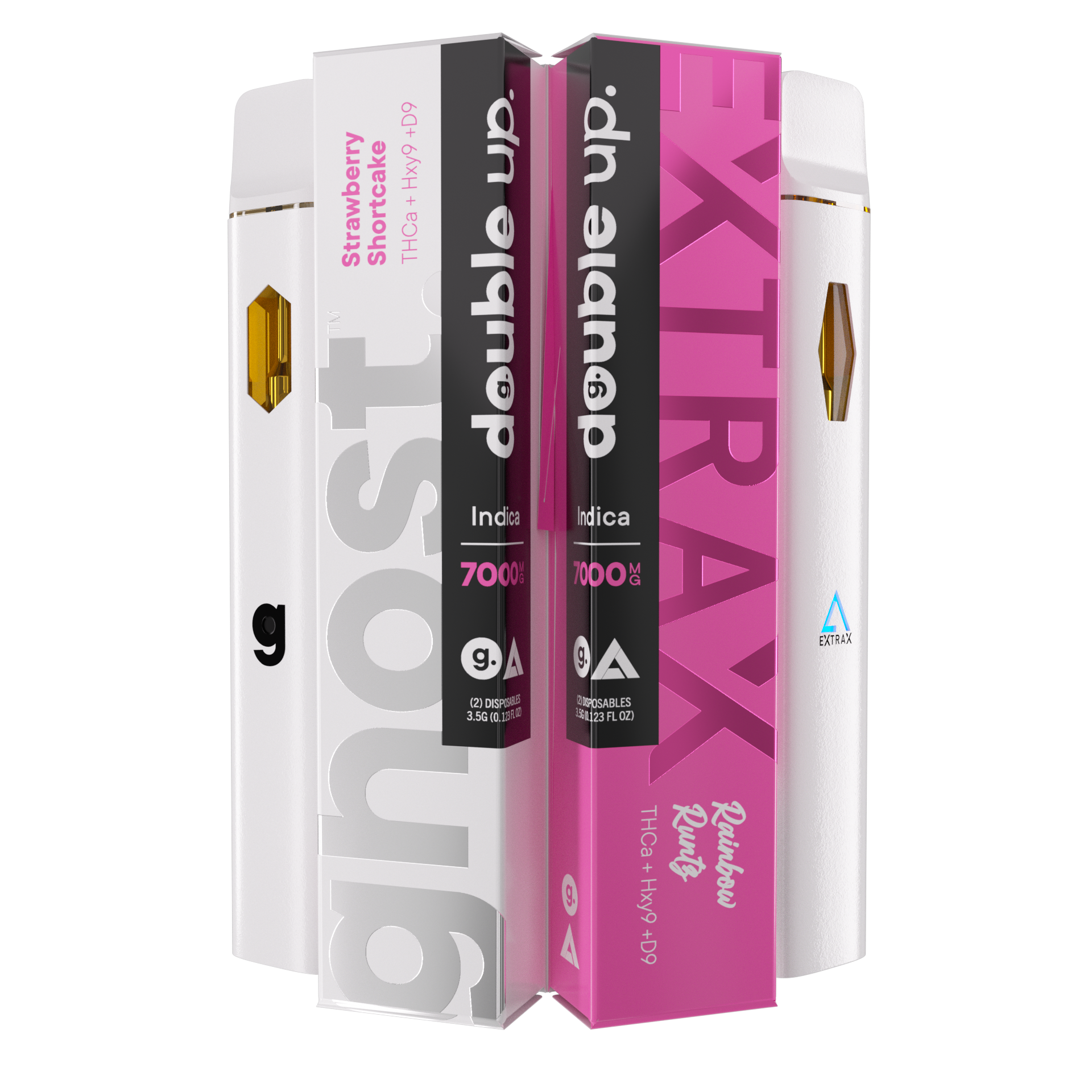 The Strawberry Shortcake + Rainbow Runtz is part of our Double Up collaboration collection, packed with THCa, HXY9, and Delta-9. The all-in-one devices come in two-pack India blends with a combined total of 7,000mg of a thc blend.